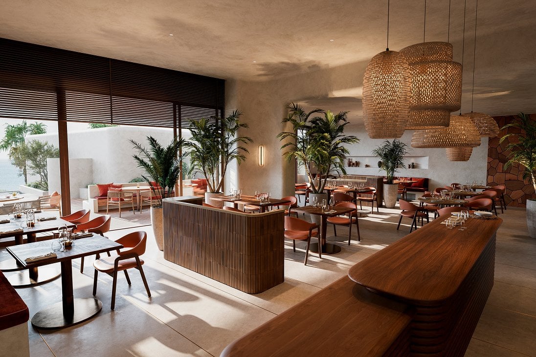 インテリアデザイナー・小坂竜氏率いるA.N.D.がデザインするレストランとビーチバーも併設し、宿泊者だけのために用意されたバリエーション豊かなファシリティが滞在を彩ります。